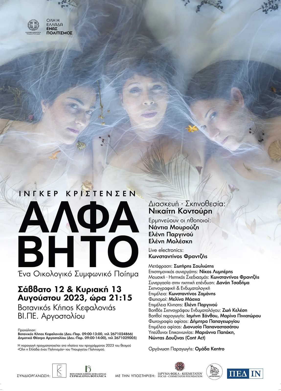 Μετά από χρόνια απουσίας, το θέατρο του Βοτανικού Κήπου Κεφαλονιάς υποδέχτηκε τον Αύγουστο του 2023 την παράσταση «ΑΛΦΑΒΗΤΟ: Ένα Οικολογικό Συμφωνικό Ποίημα», μια εμπνευσμένη παραστάση βασισμένη στο ομώνυμο ποίημα της Δανής ποιήτριας Inger Christensen.