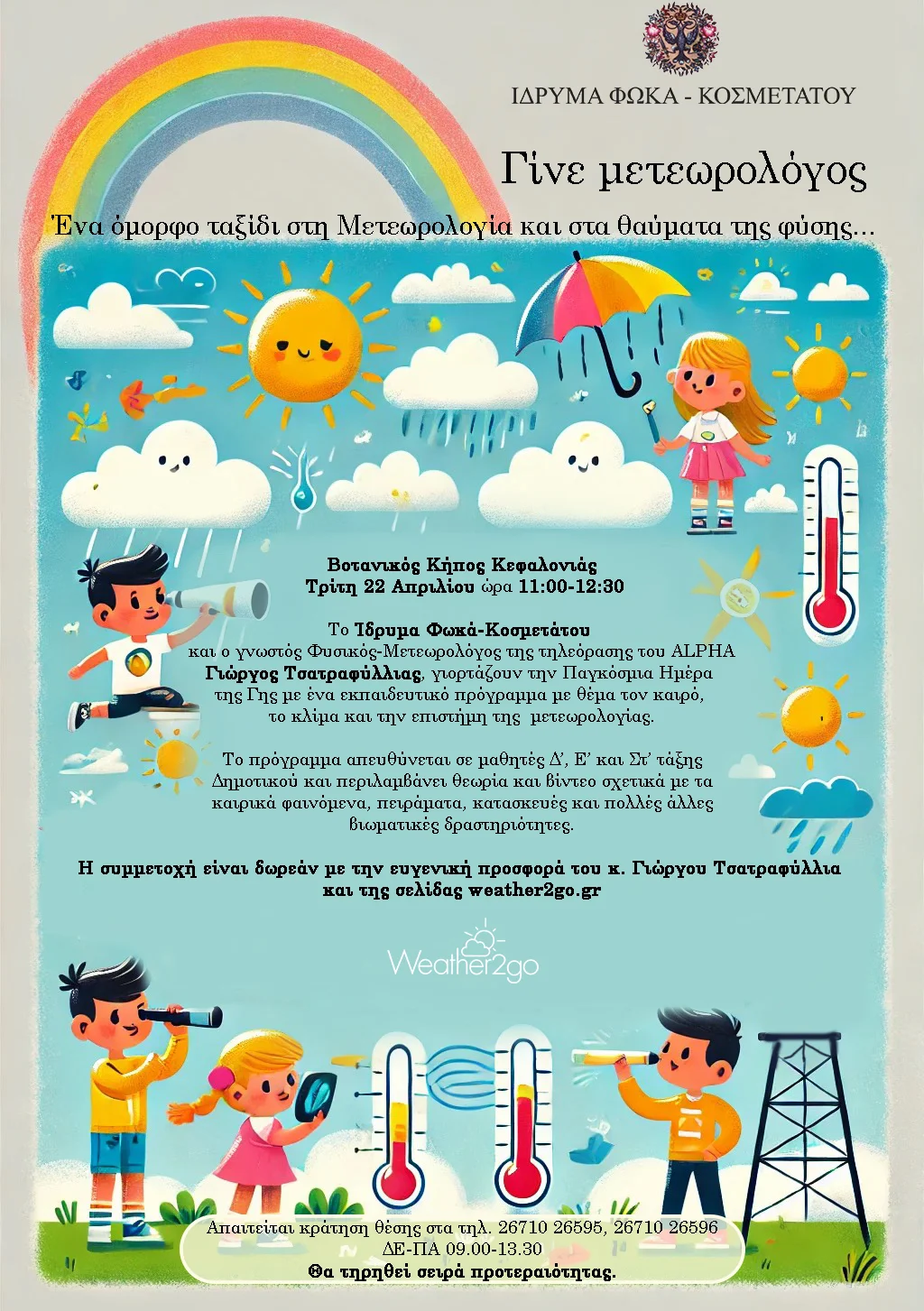 Στον Βοτανικό Κήπο Κεφαλονιάς τον Απρίλιο του 2025, το Ίδρυμα Φωκά-Κοσμετάτου και ο γνωστός φυσικός–μετεωρολόγος της τηλεόρασης του ALPHA, Γιώργος Τσατραφύλλιας, γιόρτασαν την Παγκόσμια Ημέρα της Γης με ένα εκπαιδευτικό πρόγραμμα με θέμα τον καιρό, το κλίμα και την επιστήμη της μετεωρολογίας.